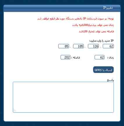 این صفحه برای موارد خاص که اگر IP سرور تغییر کند بدین وسیله می توان IP دستگاه را عوض کرد . (این صفحه مورد نیاز کاربر نمی باشد)