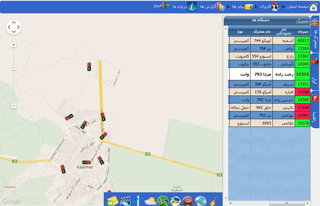 با کلید بر روی هر سطر از لیست پر شده مکان دقیق دستگاه در آن لحظه انتخاب شده بر روی نقشه نمایش داده می شود.